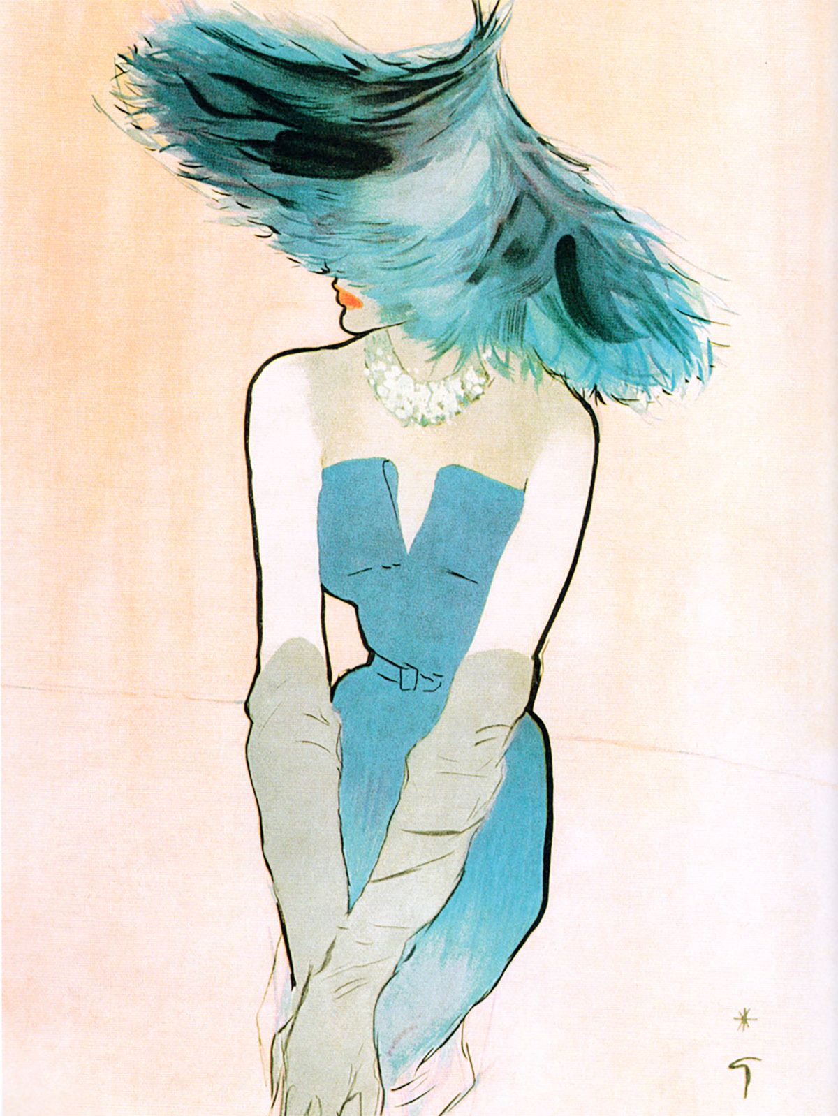 An artist who does nothing short of sorcery in my eyes is Rene Gruau. Renowned as one of, if not THE preeminent fashion illustrator, the magic he performs is doing so much with so little.