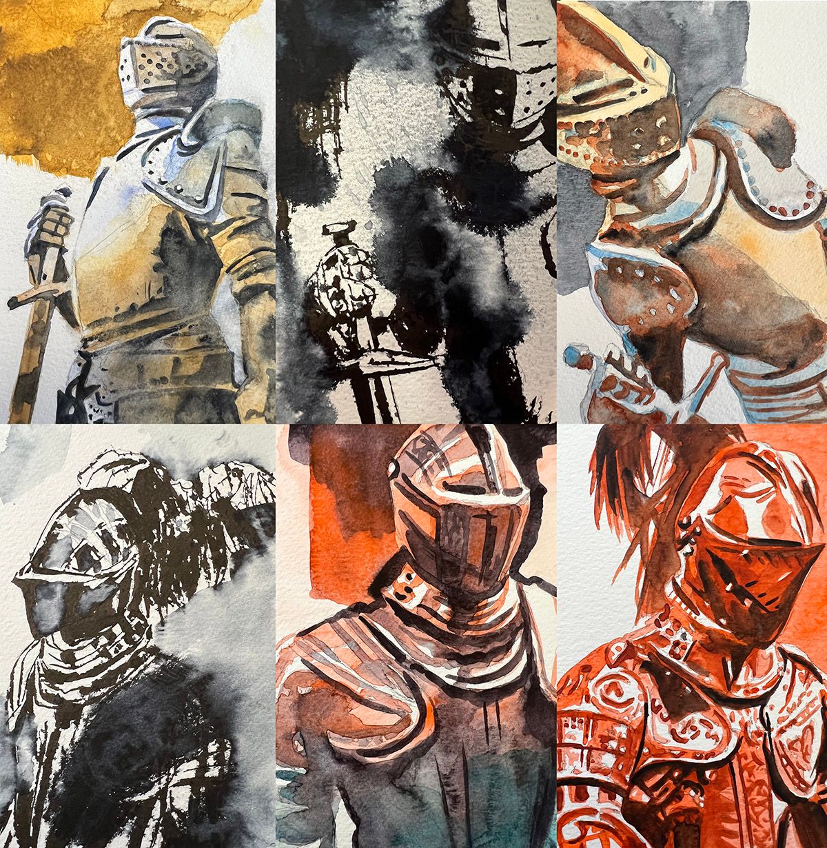The first three are of a little knight statuette my grandpa gave me as a kid, and the other three are based on some armors displayed at the Nelson-Atkins Museum. I don’t know, suits of armor are cool, man.