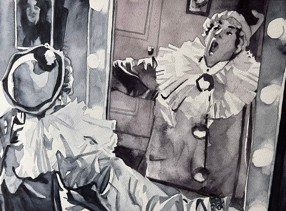 For the painting, I captured a moment where the famously-mute Harpo Marx has broken into an opera star’s dressing room and is about to lay into a solo before getting discovered by the star. Man, Harpo earned every penny in every scene. The guy WENT FOR IT any time the camera was pointed at him.